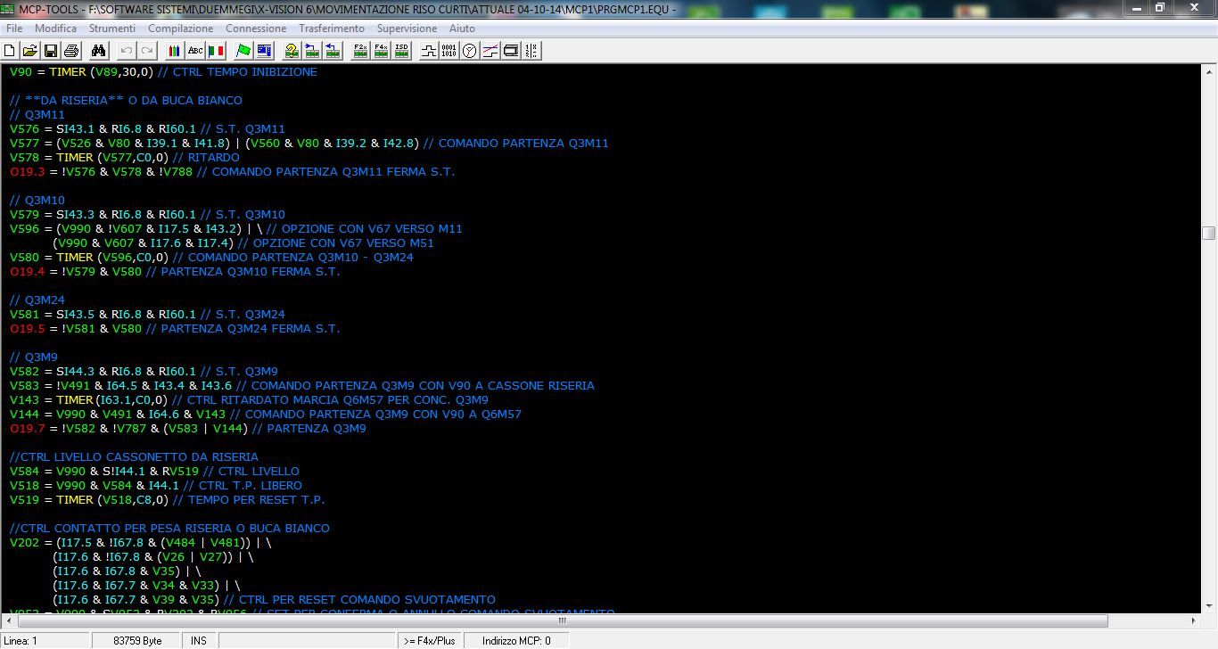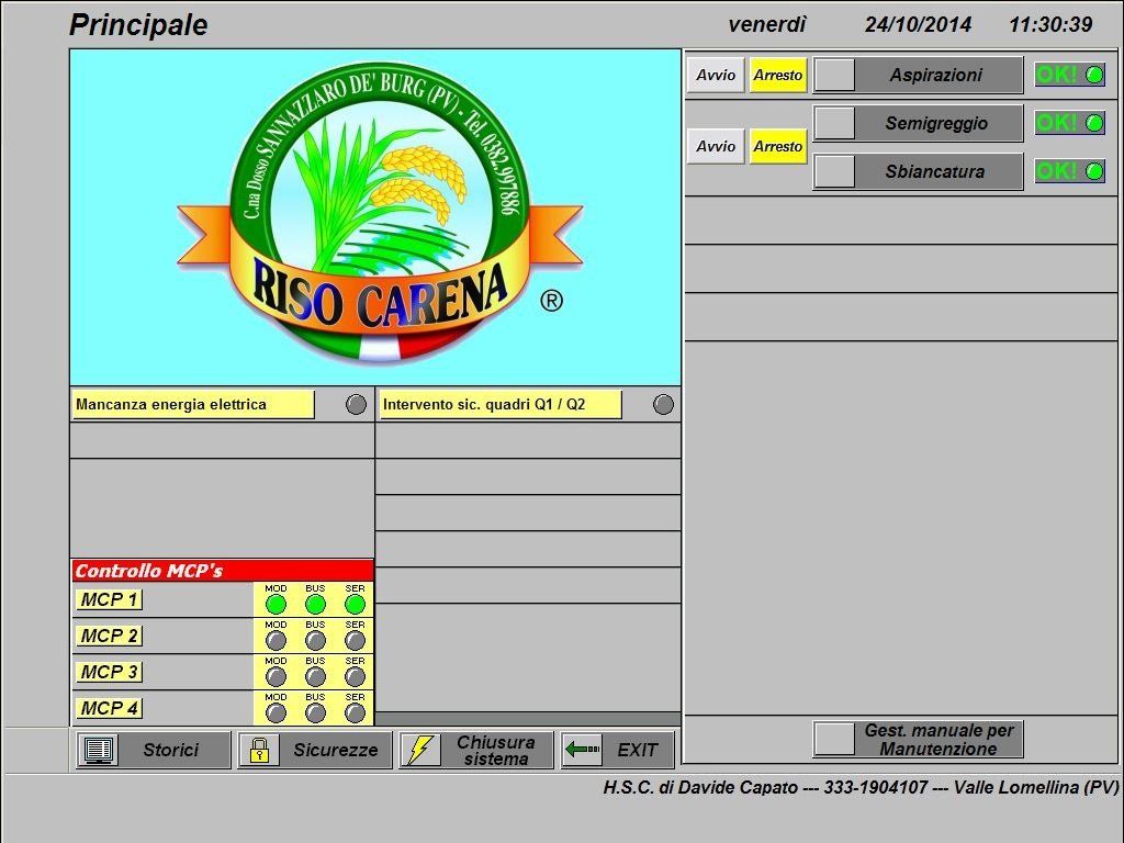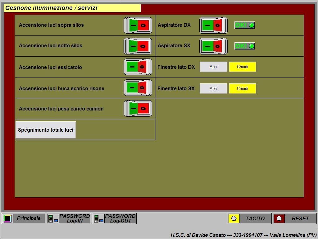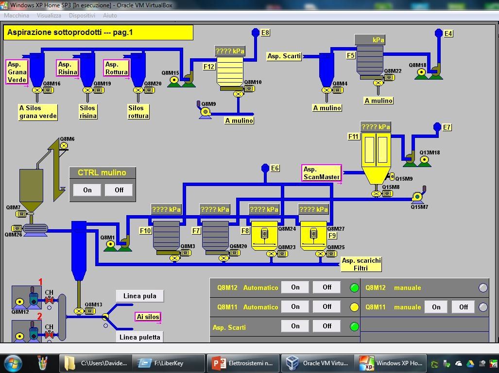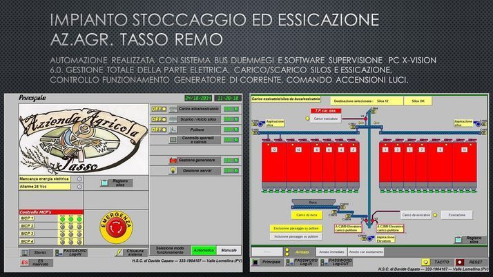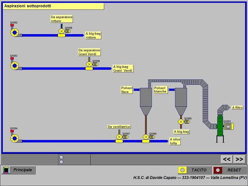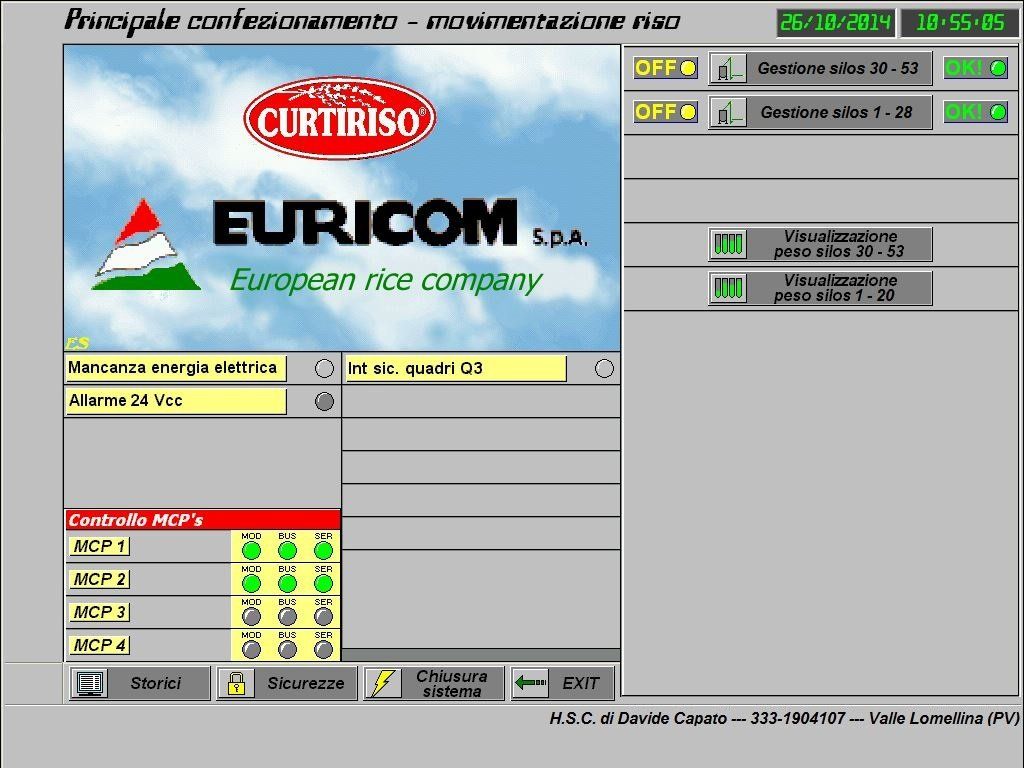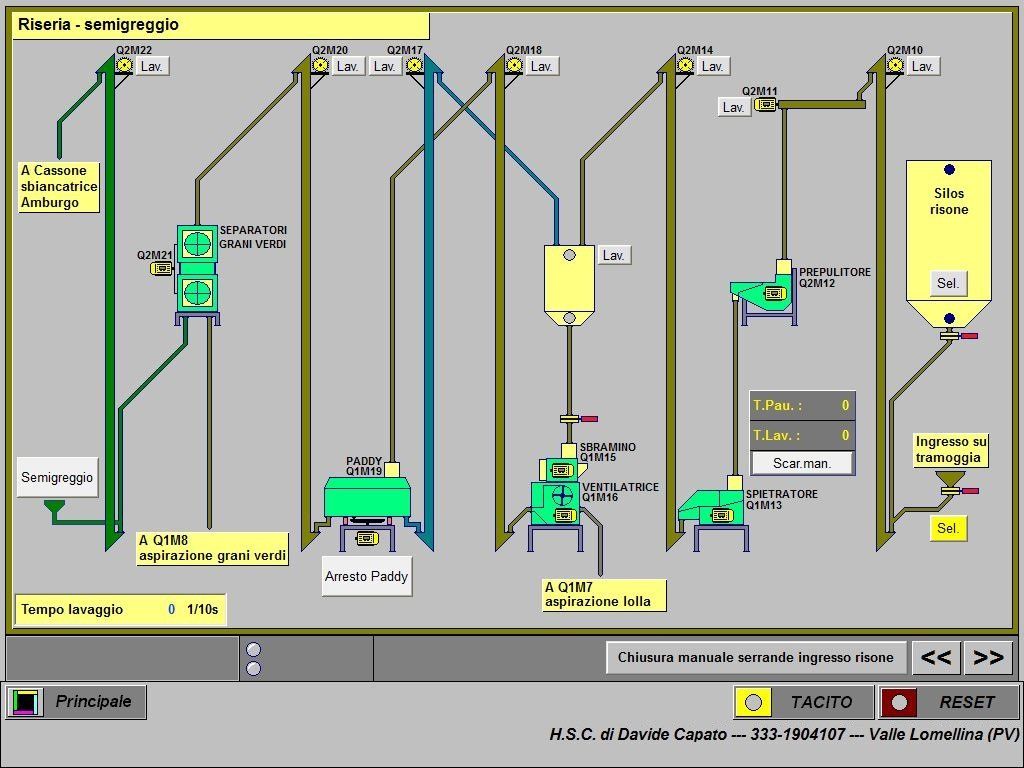 Questo impianto, realizzato con sistema bus Duemmegi e software supervisione PC X-Vision 6.0, permette di controllare 28 silos di partenza e 54 silos arrivo, con possibilità di ricicli. Il sistema garantisce l’automazione totale del processo di predisposizione delle vie di trasporto del riso.