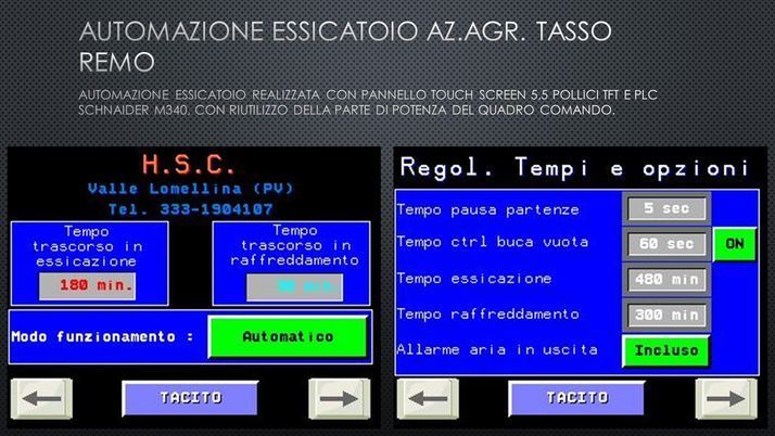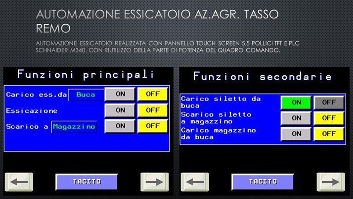 Il sistema dispone di un pannello touch screen da 5,5 pollici TFT e PLC Schnaider M340, con riutilizzo della parte di potenza del quadro comando.
