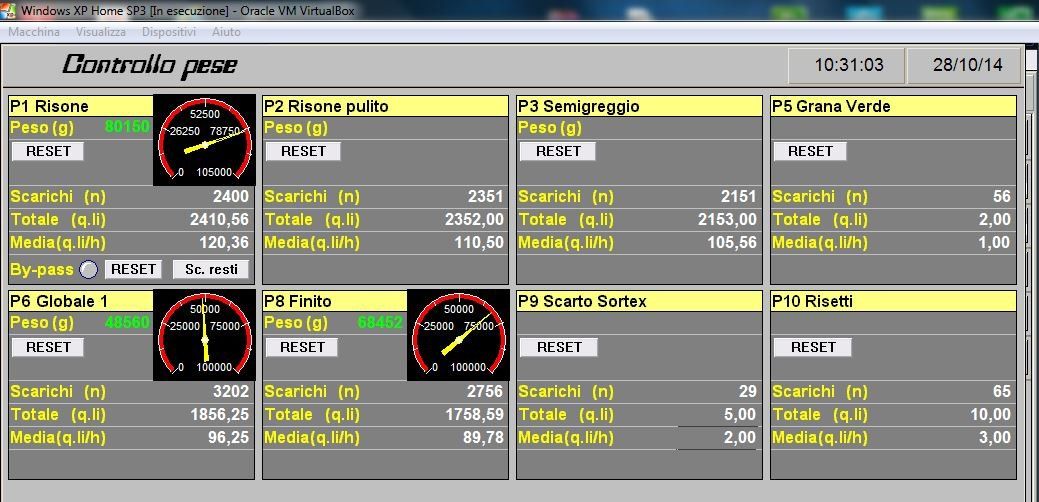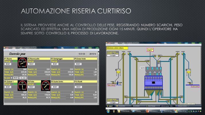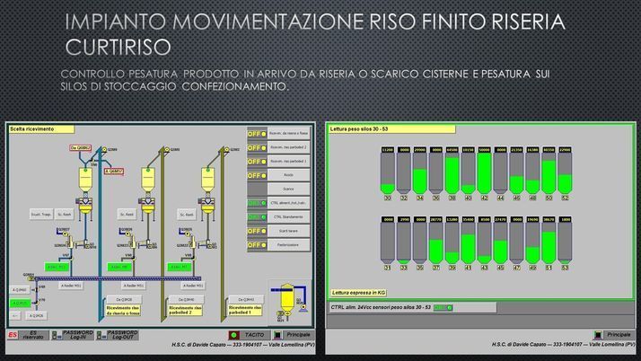 Il sistema permette la pesatura e il controllo del prodotto in arrivo dalla riseria, o dallo scarico delle cisterne. Si occupa della pesatura su silos di stoccaggio e confezionamento.
