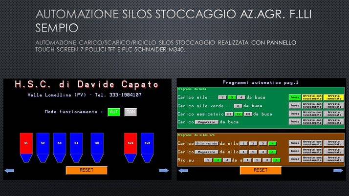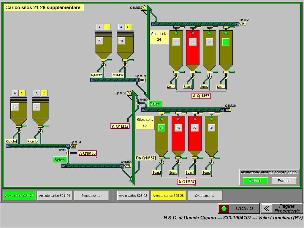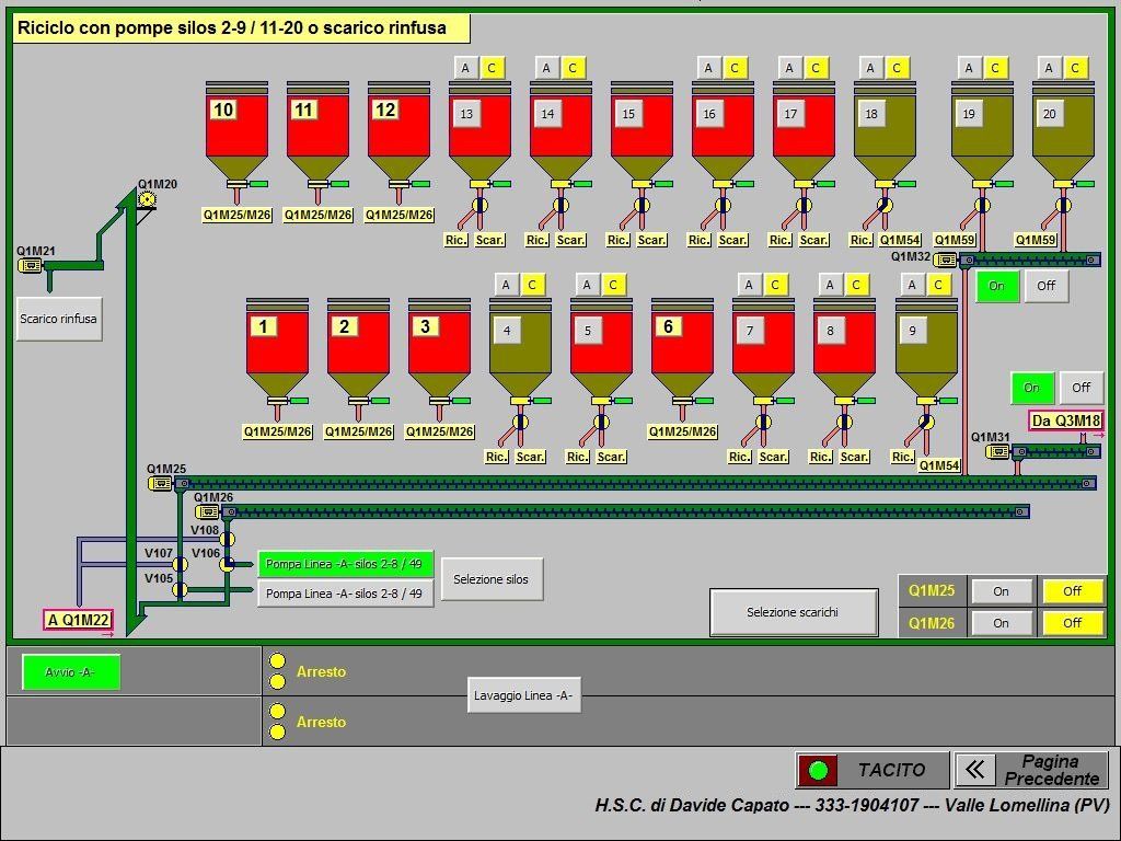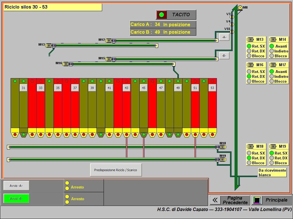 Garantisce il completo controllo sul riciclo fra silos e sullo scarico delle batterie, tutto eseguito da un PC supervisore. Un eccellente esempio di progettazione di automazioni industriali a Valle Lomellina.
