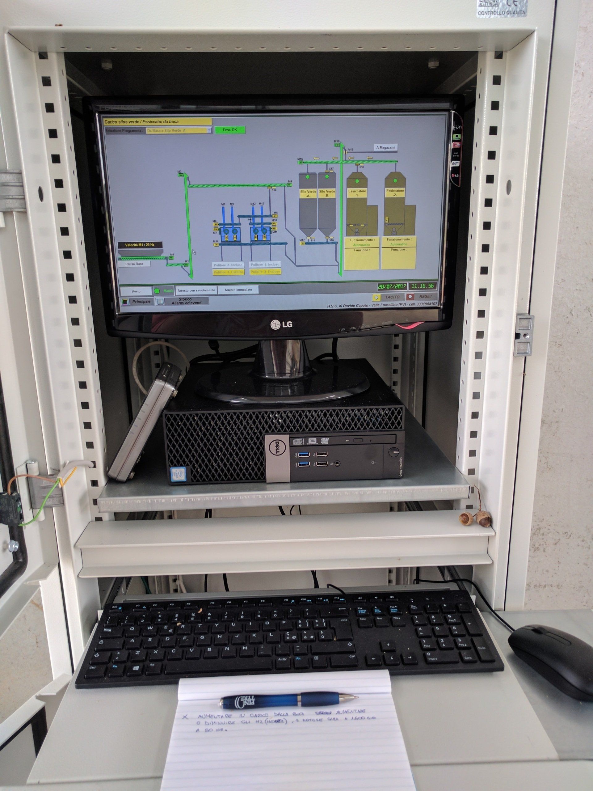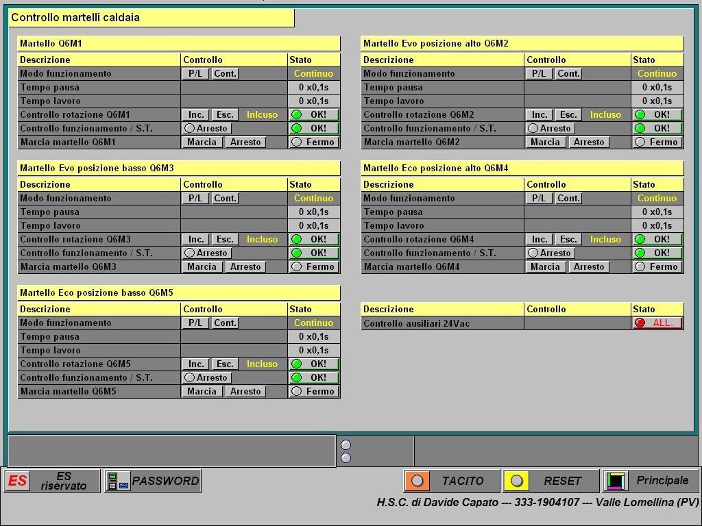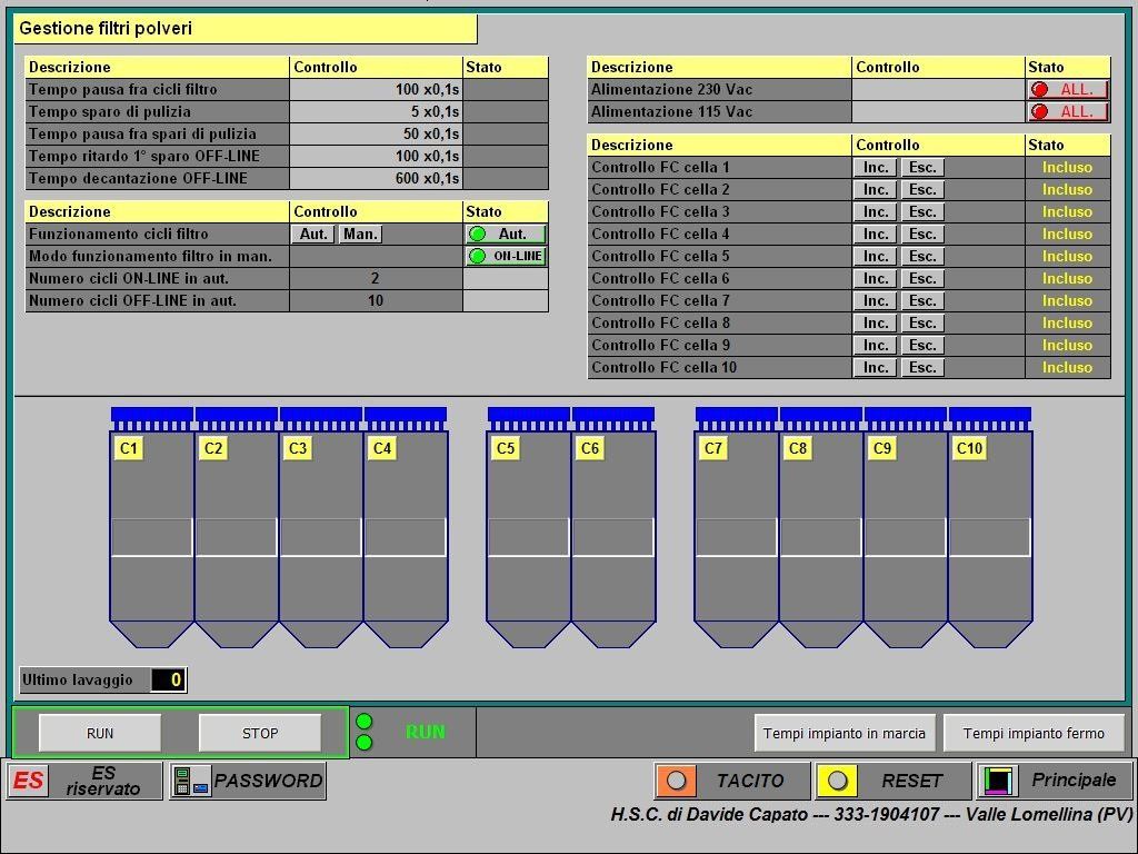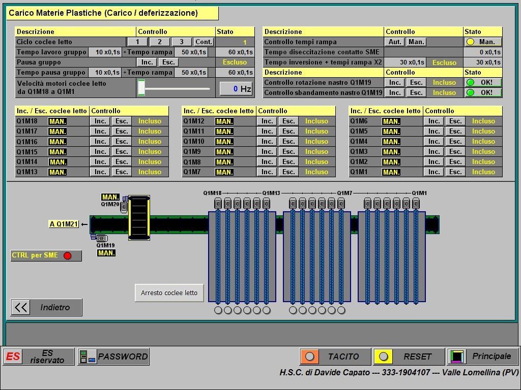 Attualmente il sistema provvede al totale controllo del filtro abbattimento polveri, impianto carico polietilene in caldaia, martelli, ecc...